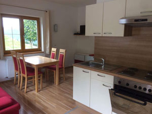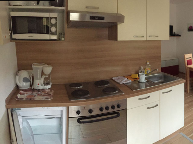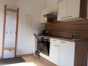 A konyha teljesen felszerelt, főzőlap, sütő, hűtőszekrény (mélyhűtő rekesszel) mikró, kenyérpirító, vízforraló, kávéfőző található benne az alapfelszereltségen (poharak, bögrék, tányérok, evőeszközök, edények, serpenyő, tepsi) felül.